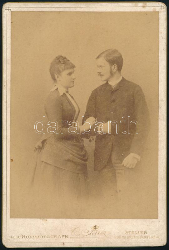 Leírás: cca 1880 Báró Rauch Pál (1865-1933) Horvát-Szlavon-Dalmátország bánja és felesége, keményhátú fotó Othmar v. Türk bécsi műterméből, 16,5×10,5 cm