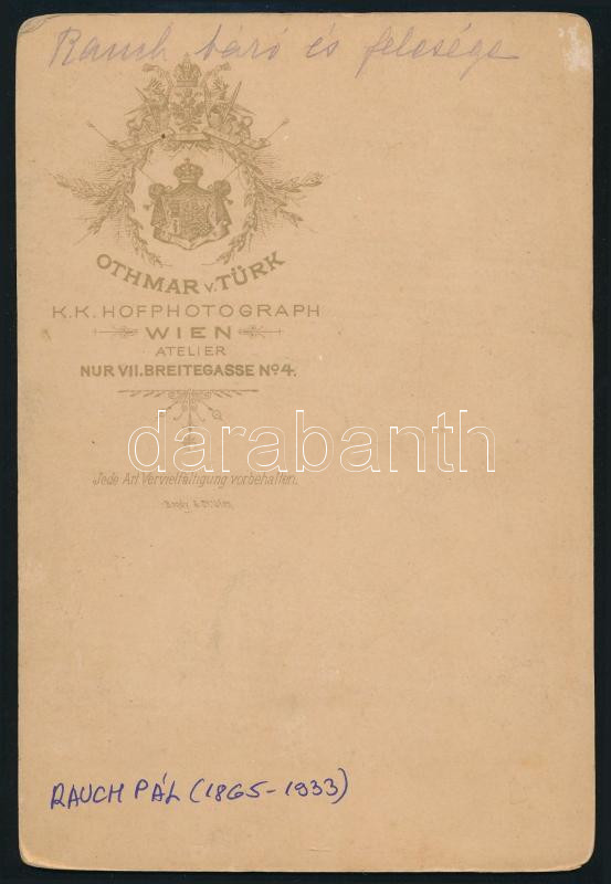 cca 1880 Báró Rauch Pál (1865-1933) Horvát-Szlavon-Dalmátország bánja ... https://www.darabanth.com/hu/515-Filatelia-kepeslap-numizmatika-mutargy-konyv-papirregiseg-ekszer-aukcio/518.0/Fotomuveszet/Foto~1061/cca-1880-Baro-Rauch-Pal-1865-1933-Horvat-Szlavon-Dalmatorszag-banja-es-felesege-kemeny~II3467602