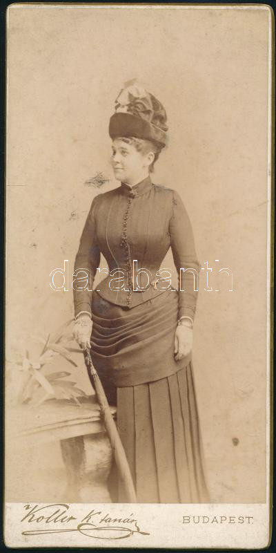 Leírás: cca 1890 Női portré, keményhátú fotó Koller Károly tanár budapesti műterméből, foltos, 20,5×10,5 cm