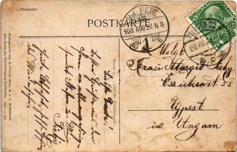 Leírás: 1908 Steyr, street view, inn. E. Prietzel photo (fa)