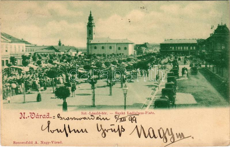 Leírás: 1899 Nagyvárad, Oradea; Szent László tér, kávéház, piac. Sonnenfeld Adolf kiadása / square, café, market (vágott / cut)