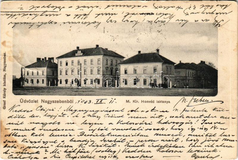 1903 Nagyszeben, Hermannstadt, Sibiu; M. Kir. Honvéd laktanya. Graef K... https://www.darabanth.com/hu/515-Filatelia-kepeslap-numizmatika-mutargy-konyv-papirregiseg-ekszer-aukcio/518.0/Kepeslapok/Erdely~889/1903-Nagyszeben-Hermannstadt-Sibiu-M-Kir-Honved-laktanya-Graef-Karoly-kiadasa-KuK~II3485439