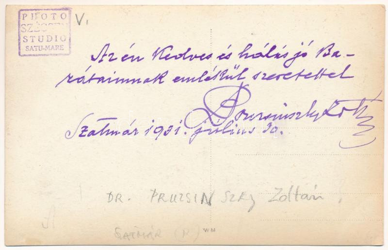 1931 Szatmárnémeti, Satu Mare; Dr. Pruzsinszky Zoltán költő saját kezű írásával / Hungarian pot with his own writing on the backside. Photo Szécsen Studio (EK)
