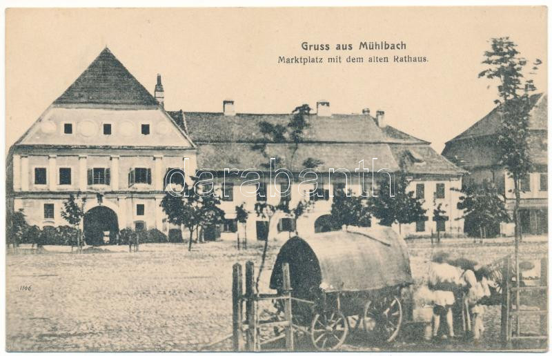 Szászsebes, Mühlbach, Sebesul Sasesc, Sebes; Marktplatz mit dem alten Rathaus. Verlag Josef Hientz / piactér, régi városháza / market square, old town hall (EK)