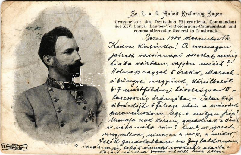 1900 Se. k.u.k. Hoheit Erzherzog Eugen / Archduke Eugen of Austria, WW... https://www.darabanth.com/hu/515-Filatelia-kepeslap-numizmatika-mutargy-konyv-papirregiseg-ekszer-aukcio/518.0/Kepeslapok/Katonai~964/1900-Se-kuk-Hoheit-Erzherzog-Eugen-Archduke-Eugen-of-Austria-WWI-Austro-Hungarian-KuK~II3486293
