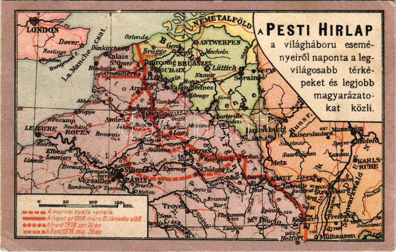 A marnei csata vonala. A Pesti Hírlap első világháborús katonai térkép... https://www.darabanth.com/hu/515-Filatelia-kepeslap-numizmatika-mutargy-konyv-papirregiseg-ekszer-aukcio/518.0/Kepeslapok/Katonai~964/A-marnei-csata-vonala-A-Pesti-Hirlap-elso-vilaghaborus-katonai-terkepe-reklam-Second-Bat~II3468445