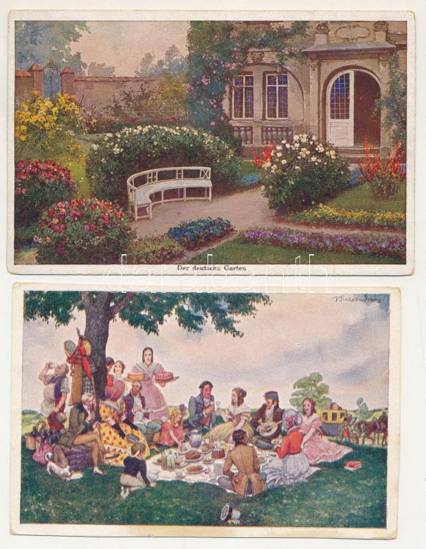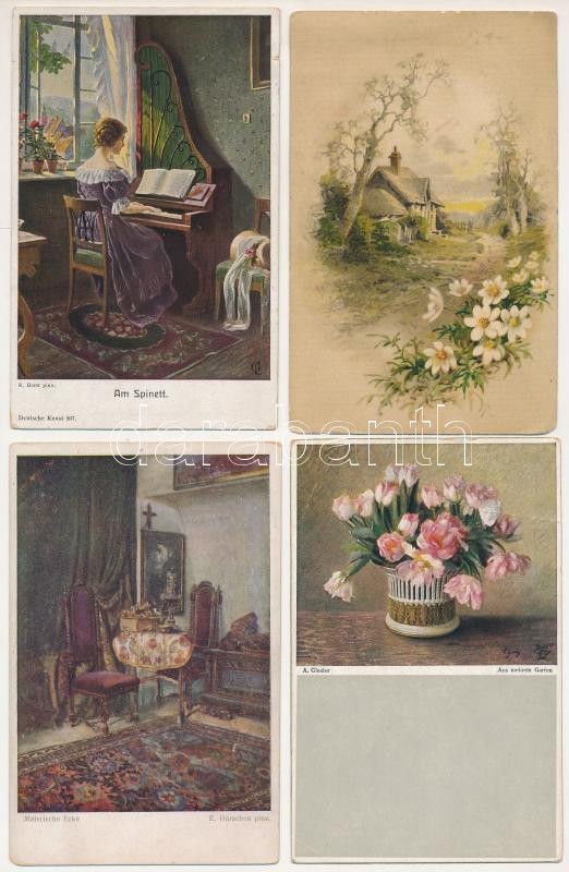 Leírás: 14 db RÉGI művészlap / 14 pre-1945 art postcards