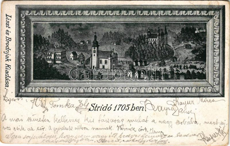 Leírás: 1913 Stridóvár, Sztrigó, Stridau, Strigova; Stridó 1705-ben. Liszt és Brodnjak kiadása / Strigova anno 1705 (EB)