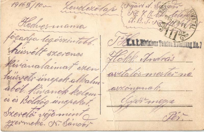 Leírás: 1916 Lutsk, Luck; Evangelische Kirche. G. Liebermann / Lutheran church + "K.u.k. Divisions Telefon Abteilung No. 7. " "Tábori postahivatal 111" (fa)