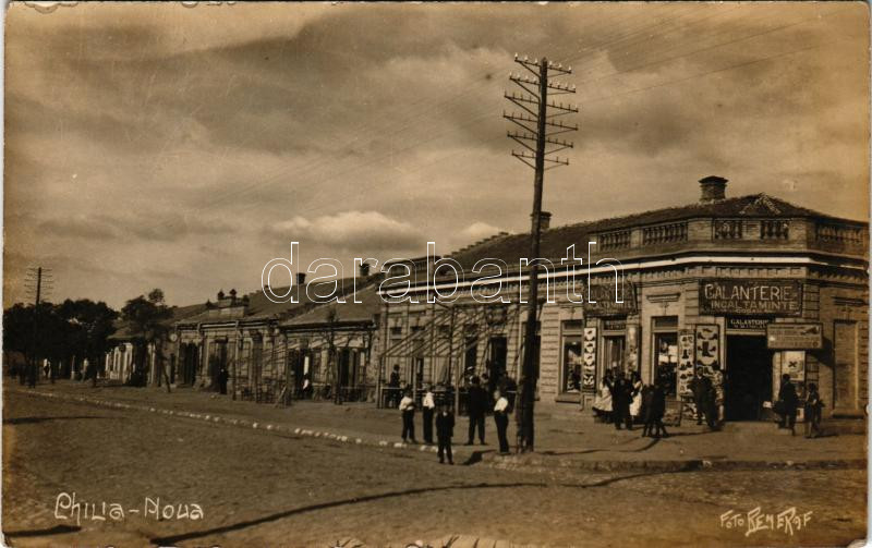 Leírás: 1927 Kiliia, Kilija, Chilia Noua; Str. Stefan cel Mare, Galanterie Incaltaminte / street view, shops. Foto Reneraf photo (EK)