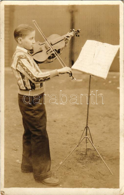 Fiú hegedűvel / boy with violin. photo (EK) https://www.darabanth.com/hu/515-Filatelia-kepeslap-numizmatika-mutargy-konyv-papirregiseg-ekszer-aukcio/518.0/Kepeslapok/Zene-Zenesz~988/Fiu-hegeduvel-boy-with-violin-photo-EK~II3487441