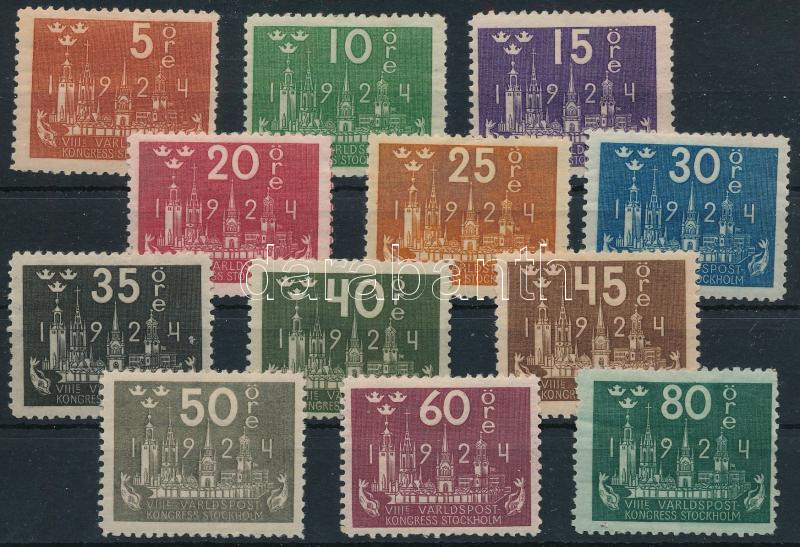 Leírás: Svédország 1924 Postakongresszus sor 12 klf értéke (**Mi EUR 460.-)