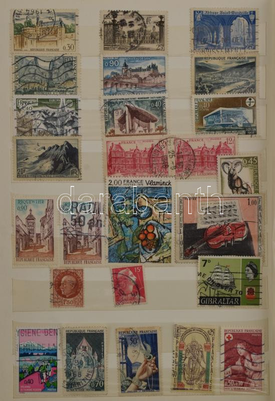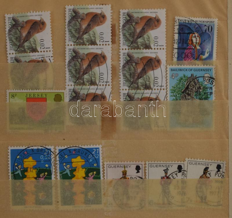 Leírás: 21 db különféle méretű berakó külföldi bélyegekkel