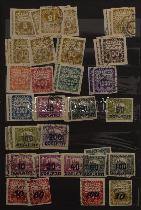 Csehszlovák tétel, benne gyűjtemény, gyűjteményrész elÅ‘nyomott albumlapok, nagy rendezÅ‘, dobozban hozzá Szlovákia régi postatiszta sorok, összefüggések, Ãvdarabok, dobozban és borÃtékban