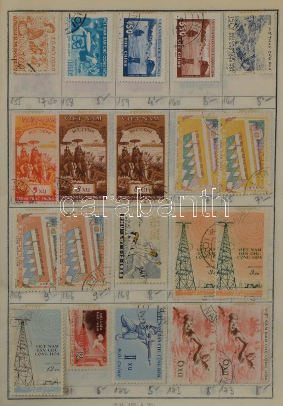 Leírás: Kb 4-5.000 db bélyeg 7 db cserefüzetben, változatos anyag, benne Jugoszlávia, Horvátország, Csehszlovákia, Lengyelország, Németország, francia gyarmatok, Vietnam