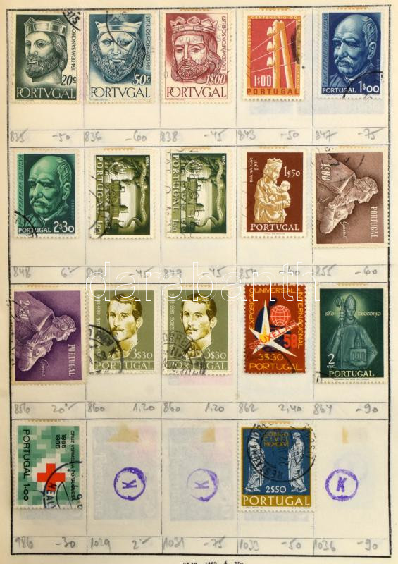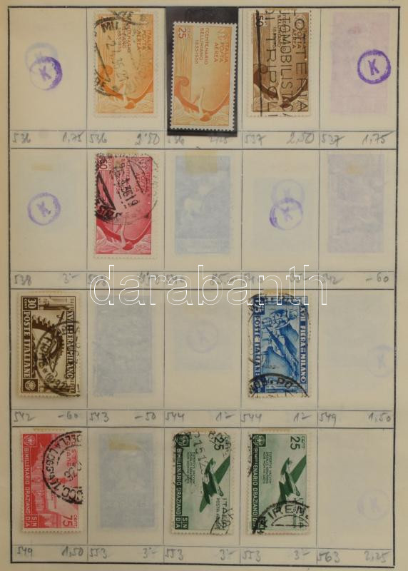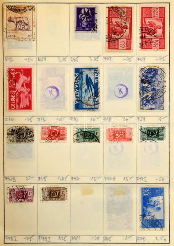 Leírás: Kb 4-5.000 db bélyeg 8 db cserefüzetben, változatos anyag, benne Olaszország, Németország, Svájc, Portugália, Spanyolország, Franciaország, Monaco stb.