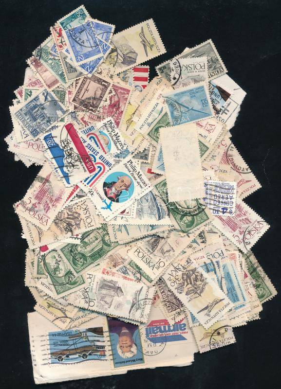 Leírás: Néhány száz db légiposta bélyeg tasakban ömlesztve, egy része áztatni való