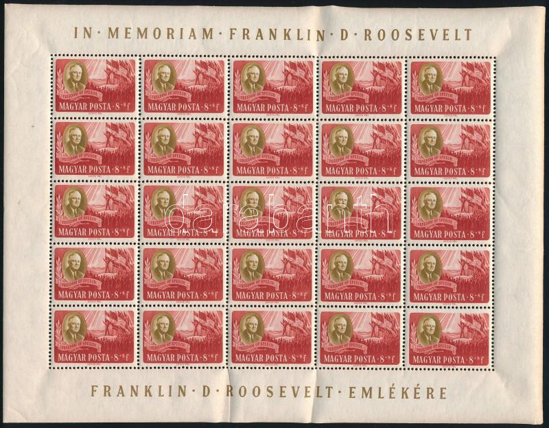 1947 Roosevelt 8f 25-ös teljes ív (ráncok / creases) https://www.darabanth.com/hu/515-Filatelia-kepeslap-numizmatika-mutargy-konyv-papirregiseg-ekszer-aukcio/518.0/Kiemelt-magyar-filatelia-tetelek-es-gyujtemenyek/Egyes-magyar-kiadasok-rendkivul-alacsony-kikialtasi-aron~64/1947-Roosevelt-8f-25-os-teljes-iv-rancok-creases~II3489829