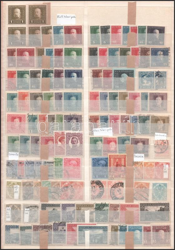 Leírás: 222 db régi bélyeg, köztük vágott Bosznia is, nagyalakú berakólap mindkét oldalán
