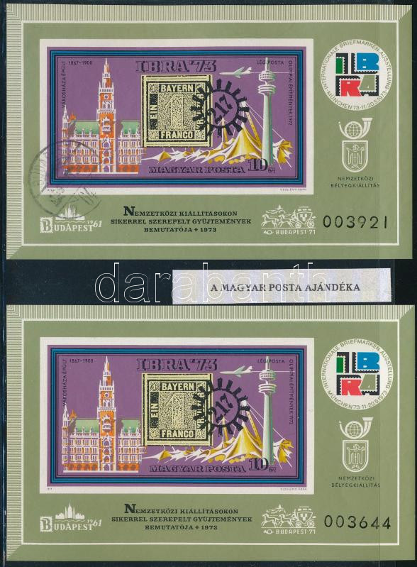 1973 IBRA '73 2 db ajándék blokk (84.000) https://www.darabanth.com/hu/515-Filatelia-kepeslap-numizmatika-mutargy-konyv-papirregiseg-ekszer-aukcio/518.0/Kiemelt-magyar-filatelia-tetelek-es-gyujtemenyek/Tobb-peldanyos-magyar-tetelek-rendkivul-alacsony-kikialtasi-aron~67/1973-IBRA-73-2-db-ajandek-blokk-84000~II3485082