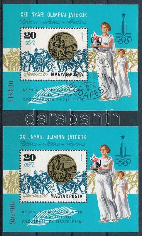 1980 Olimpiai érmesek IV. 2 db ajándék blokk (50.000) https://www.darabanth.com/hu/515-Filatelia-kepeslap-numizmatika-mutargy-konyv-papirregiseg-ekszer-aukcio/518.0/Kiemelt-magyar-filatelia-tetelek-es-gyujtemenyek/Tobb-peldanyos-magyar-tetelek-rendkivul-alacsony-kikialtasi-aron~67/1980-Olimpiai-ermesek-IV-2-db-ajandek-blokk-50000~II3485144