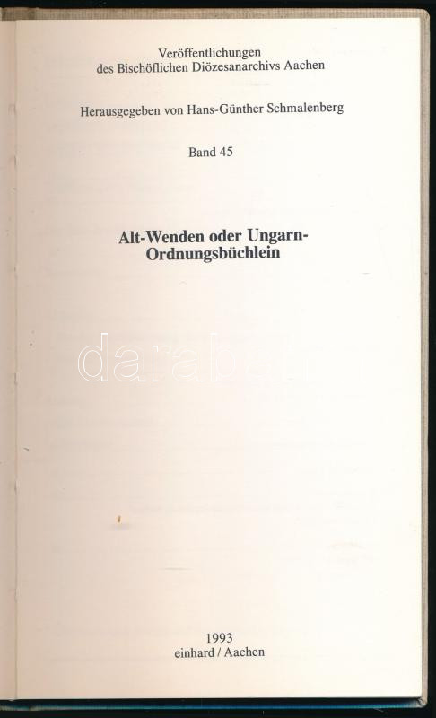 Leírás: Alt-Wenden oder Ungarn-Ordnungsbüchlein. Herausegeben von Hans-Günther Schalenberg. Band 45. Aachen, 1993, Einhard. Kiadói kartonált kötés, jó állapotban.