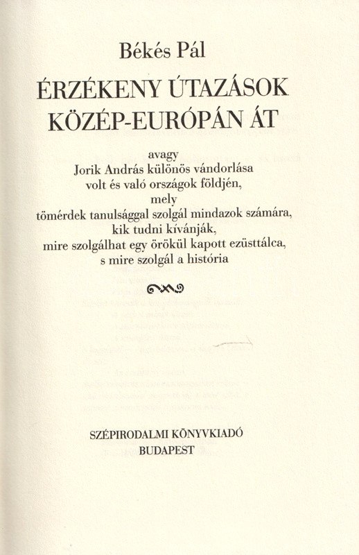 Érzékeny útazások Közép-Európán át, avagy Jorik András különös vándorlása volt és való országok földjén. (Dedikált.)