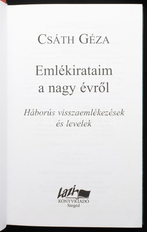 Csáth Géza: Emlékirataim a nagy évről. Háborús visszaemlékezések és le... https://www.darabanth.com/hu/515-Filatelia-kepeslap-numizmatika-mutargy-konyv-papirregiseg-ekszer-aukcio/518.0/Konyvek/Konyvek-Egyeb-ritkasagok~1056/Csath-Geza-Emlekirataim-a-nagy-evrol-Haborus-visszaemlekezesek-es-levelek-Szeged-2005-~II3463370