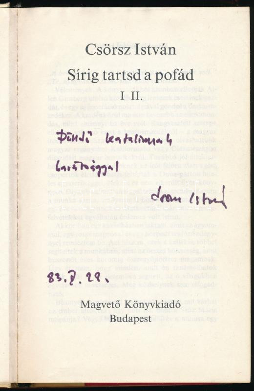 Leírás: Csörsz István: Sírig tartsd a pofád. A szerző, Csörsz István (1942-2018) író által DEDIKÁLT példány. Bp.,1983,Magvető. 2., bővített kiadás Kiadói egészvászon-kötés, kiadói papír védőborítóban.