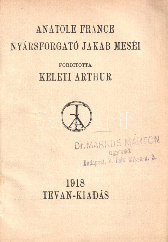 (Békéscsaba), 1918. Tevan-kiadás (Tevan Adolf könyvnyomdája). 138 + [6] p. Első magyar kiadás.