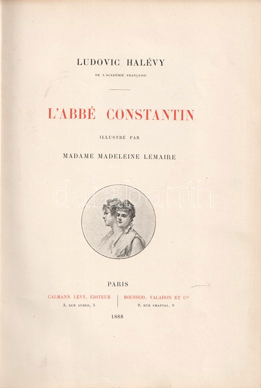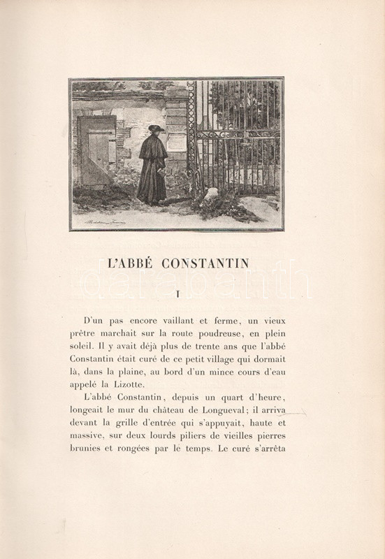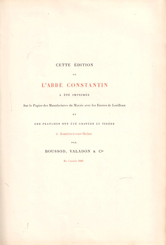Oldalszámozáson belül gazdagon illusztrált, bibliofil kiadás. Kolofon: 'Cette édition de L'abbé Constatin a été imprimée sur le Papier des Manufactures de Marais avec les Encres de Lorilleux et les planches ont été gravées et tirées a Asnieres-sur-Seine par Bousson, Valadon & Cie".