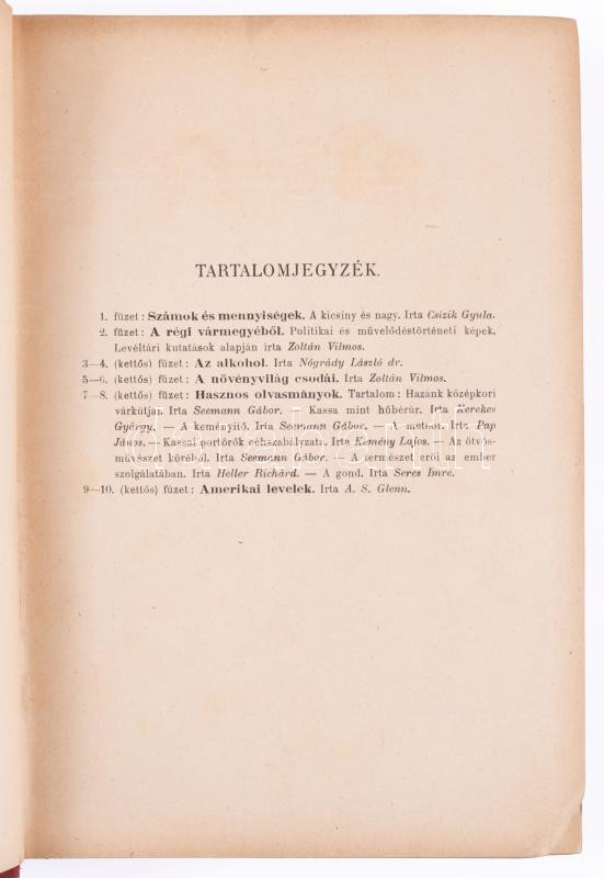 Leírás: Iparosok olvasótára XX. évf. I-X. füzet. Szerk.: Mártonfy Márton. Bp., 1914., Lampel R. (Wodianer F. és Fiai.) Benne érdekes írásokkal. Kiadói aranyozott egészvászon-kötés, kissé kopott, kissé foltos borítóval.