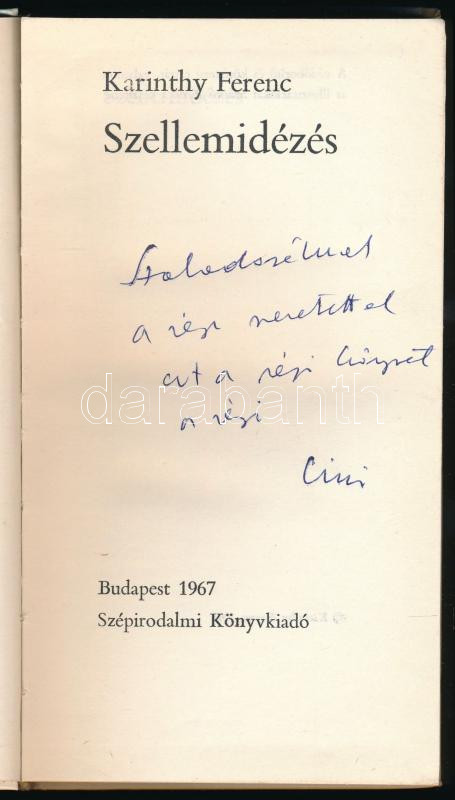 Karinthy Ferenc: Szellemidézés. A szerző, Karinthy Ferenc "Cini&q... https://www.darabanth.com/hu/515-Filatelia-kepeslap-numizmatika-mutargy-konyv-papirregiseg-ekszer-aukcio/518.0/Konyvek/Konyvek-Egyeb-ritkasagok~1056/Karinthy-Ferenc-Szellemidezes-A-szerzo-Karinthy-Ferenc-Cini-1921-1992-altal-DEDIKALT-pe~II3487922
