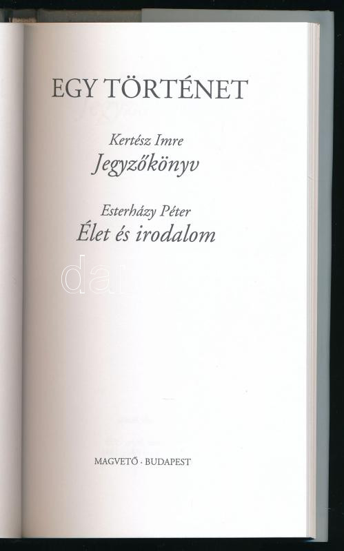 Kertész Imre-Esterházy Péter: Egy történet. Jegyzőkönyv. Élet és iroda... https://www.darabanth.com/hu/515-Filatelia-kepeslap-numizmatika-mutargy-konyv-papirregiseg-ekszer-aukcio/518.0/Konyvek/Konyvek-Egyeb-ritkasagok~1056/Kertesz-Imre-Esterhazy-Peter-Egy-tortenet-Jegyzokonyv-Elet-es-irodalom-Bp-1993-Magve~II3492093