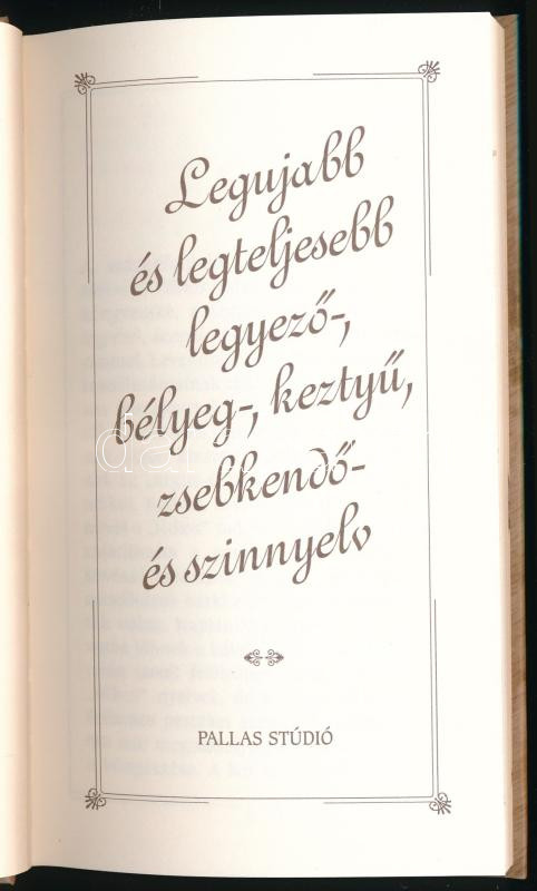 Legujabb és legteljesebb legyező-, bélyeg-, keztyű, zsebkendő- és szin... https://www.darabanth.com/hu/515-Filatelia-kepeslap-numizmatika-mutargy-konyv-papirregiseg-ekszer-aukcio/518.0/Konyvek/Konyvek-Egyeb-ritkasagok~1056/Legujabb-es-legteljesebb-legyezo-belyeg-keztyu-zsebkendo-es-szinnyelv-Bp-2000-Pallas~II3471803