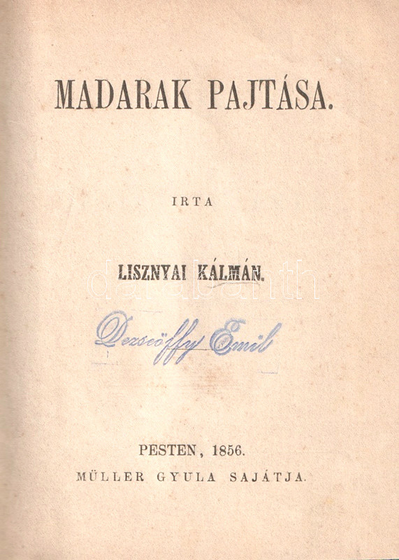 Poss.: Dezseöffy Emil. [Cserneki és tarkői gróf Dessewffy Emil (1814-1866) magyar újságíró, politikus, az MTA tiszteleti tagja és elnöke 1855-től 1866-ig.]