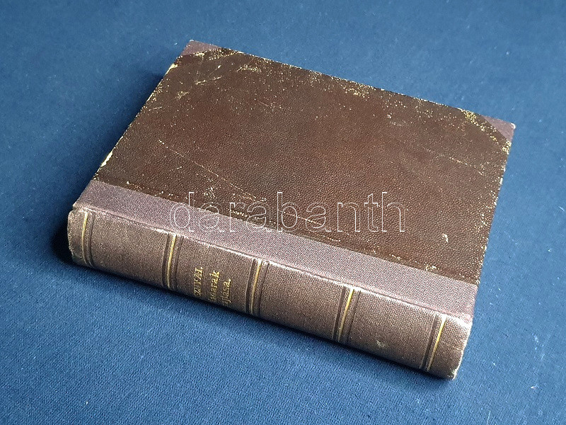 Aranyozott gerincű korabeli félvászon kötésben, márványmintás festésű lapszélekkel. Jó példány.