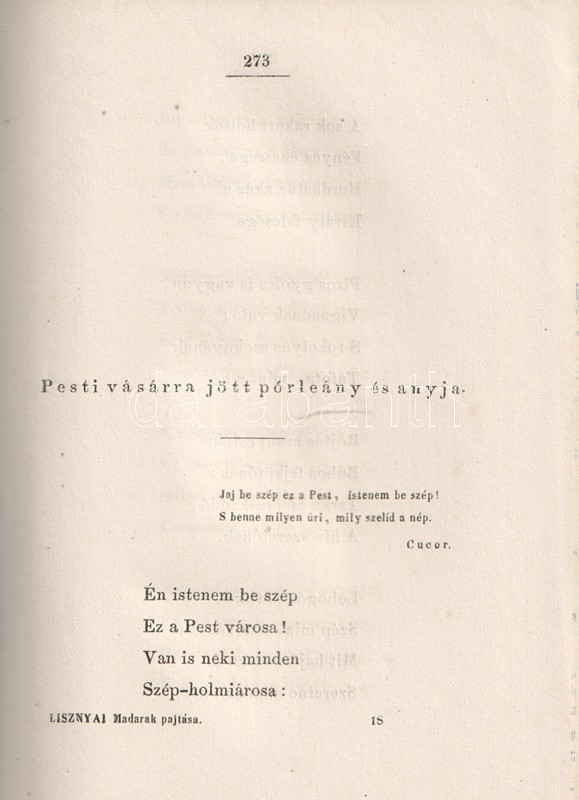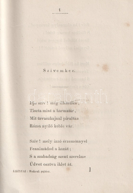 Lisznyai Kálmán: Madarak pajtása. [Költemények.] Pesten, 1856. Müll...