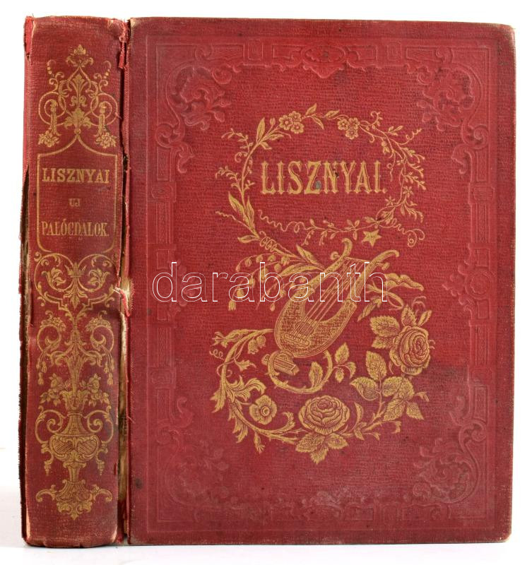 Leírás: Lisznyai Kálmán: Uj palócdalok. Pest, 1858, Lampel. XV l. (Liszt Ferenc tiszteletére írott vers), 292 l. Első kiadás! Kiadói, aranyozott egészvászon-kötésben, körül aranyozott élmetszéssel, gerinc sérült