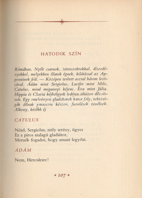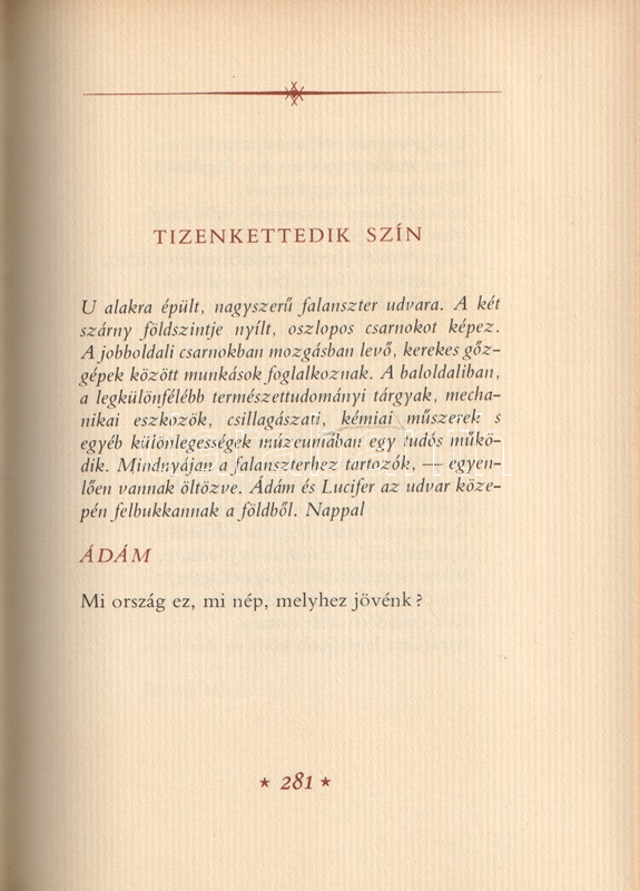 Könyvgyűjtők számára készült bibliofil kiadás. Kolofon: "Szerkesztette Szász Imre. A kötet belső illusztrációit Nagyajtay Teréz, Madách Imre arcképét Diósy Antal rajzolta. A kötés és tipográfia Soproni Béla munkája. Készült az Athenaeum Nyomdában, bembó betűtípusból monophoto-eljárással 80 g-os offset papíron offset nyomással 13,000 példány egészvászon kötésben, 2000 példányt számozva, bőrkötésben. Ez a könyv az 1654. számú példány".