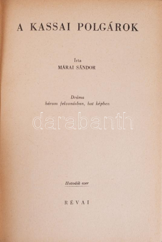 Márai Sándor: A kassai polgárok. Bp., 1942, Révai, 250+(2) p. Kiadói f... https://www.darabanth.com/hu/515-Filatelia-kepeslap-numizmatika-mutargy-konyv-papirregiseg-ekszer-aukcio/518.0/Konyvek/Konyvek-Egyeb-ritkasagok~1056/Marai-Sandor-A-kassai-polgarok-Bp-1942-Revai-250plus2-p-Kiadoi-felvaszon-kotes-szaka~II3469470