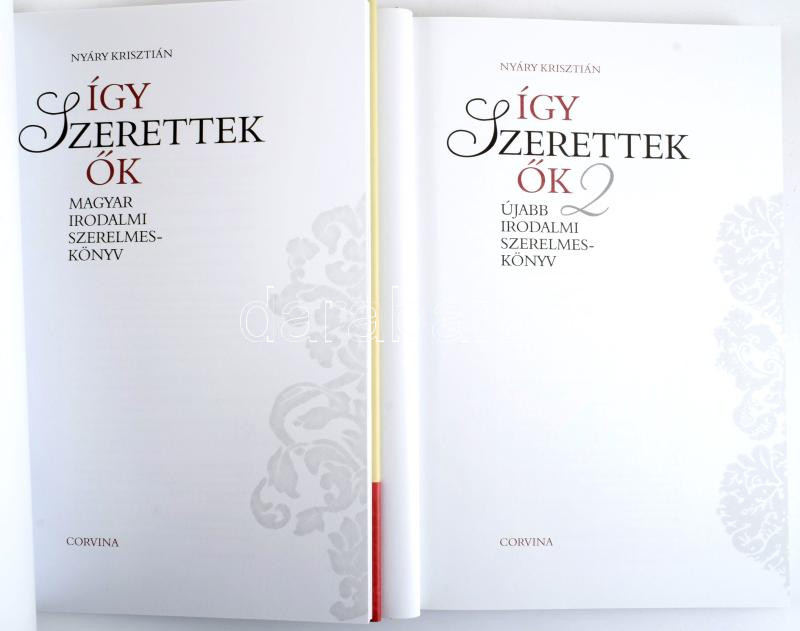 Nyáry Krisztián: Így szerettek ők 1-2. Magyar Irodalmi Szerelmeskönyv.... https://www.darabanth.com/hu/515-Filatelia-kepeslap-numizmatika-mutargy-konyv-papirregiseg-ekszer-aukcio/518.0/Konyvek/Konyvek-Egyeb-ritkasagok~1056/Nyary-Krisztian-Igy-szerettek-ok-1-2-Magyar-Irodalmi-Szerelmeskonyv-Bp-2013-2014-Corvina~II3487582