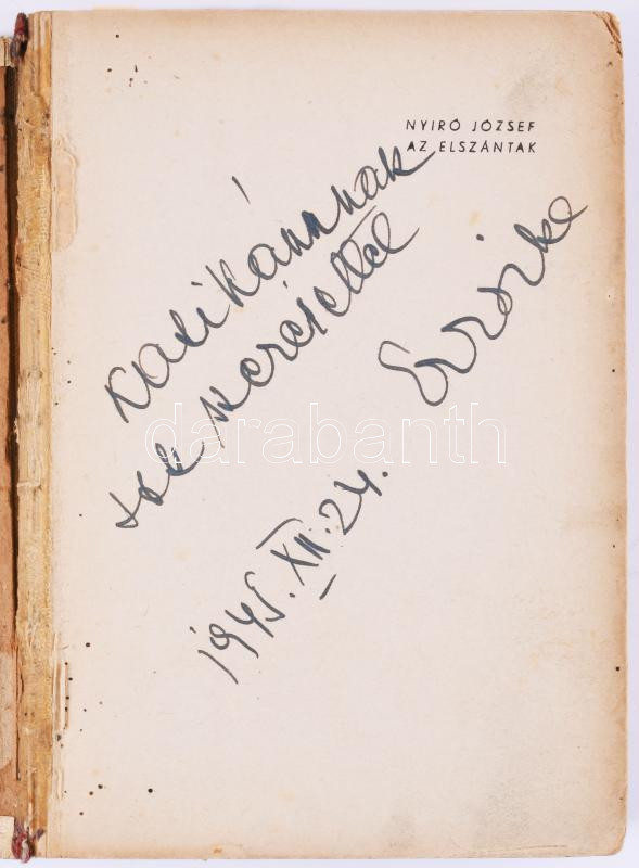 Leírás: Nyírő József: Az elszántak. A szerző, Nyirő József (1889-1953) erdélyi magyar író által DEDIKÁLT példány! Bp., 1943., Révai, 236+3 p. 1. kiadás. Kiadói félvászon-kötés, kopott borítóval, a könyvtest egyben van, de elvált a borítótól.