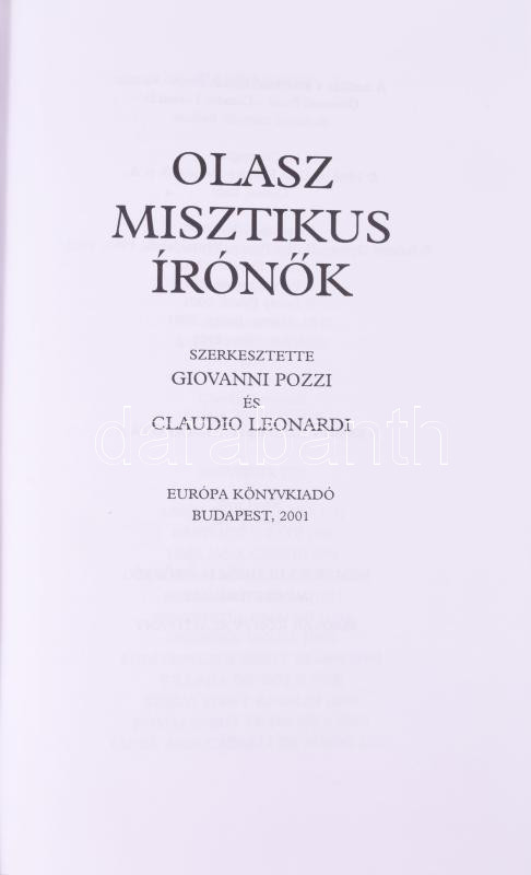 Leírás: Pozzi, G.-Leonardi, C. (szerk): Olasz misztikus írónők. Európa Könyvkiadó, 2001. Kiadói kartonált papírkötés, kiadói papír védőborítóban