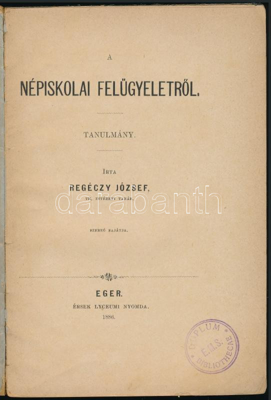 Regéczy József: A népiskolai felügyeletről, Tanulmány. Eger, 1886. Sze... https://www.darabanth.com/hu/515-Filatelia-kepeslap-numizmatika-mutargy-konyv-papirregiseg-ekszer-aukcio/518.0/Konyvek/Konyvek-Egyeb-ritkasagok~1056/Regeczy-Jozsef-A-nepiskolai-felugyeletrol-Tanulmany-Eger-1886-Szerzoi-172-1-p-Kiado~II3468117