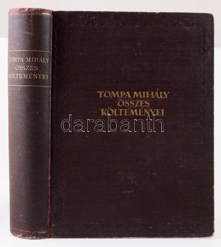Tompa Mihály összes költeményei. Sajtó alá rend.: Arany János, Gyulai Pál, Lévay József és Szász Károly. Bp., 1870, Méhner Vilmos, 2 sztl. lev.+ 807+(1) p. Aranyozott egészvászon-kötésben, kissé kopottas borÃtóval és gerinccel, belül nagyrészt jó állapotban.