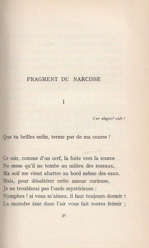 Paul Valéry (1871-1945) francia költő alkotói pályája 1897-től húsz évig szünetelt. Kötetünk az 1917-től újrainduló költői életmű második korszakának fontos műve, amely az induló szürrealistákra komoly hatással volt.