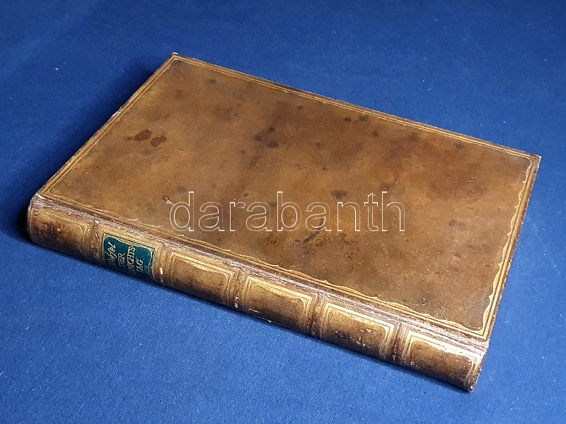 Aranyozott gerincű kiadói bőrkötésben, felül aranyozott lapszélekkel, az aranyozott címfelirat a gerincen zöld címkén. Jó példány.