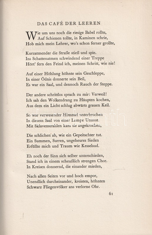 Franz Werfel (1890-1945) prágai születésű osztrák költő, drámaíró, szerkesztő, a prágai német ajkú közösség, Franz Kafka és Max Brod köreinek tagja. 1912-től a lipcsei Kurt Wolff kiadó lektoraként dolgozott. A háború éveiben, 1916 és 1917 során, részben frontszolgálata alatt keletkezett, expresszionista verseit tartalmazó kötetét korábbi munkáltatója adta ki. Regényírói karrierje csak később, az 1920-as évek közepétől indult el.