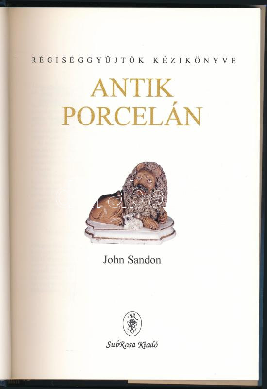 Leírás: John Sandon: Antik porcelán. Ford.: Kovács Zsuzsa, Lengyel András, Molnár Tünde. Régiséggyűjtők Kézikönyve. Bp., 1998, SubRosa. Gazdag képanyaggal illusztrálva. Kiadói egészvászon-kötés, kiadói papír védőborítóban, jó állapotban.